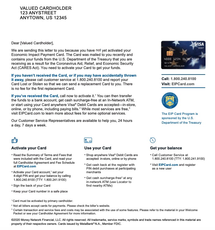 Formally called eip economic impact payment cards the debit cards are an alternative to receiving a paper check. I activated the card and immediately transferred the funds to our personal bank account. Money network has a 24 hour call center.